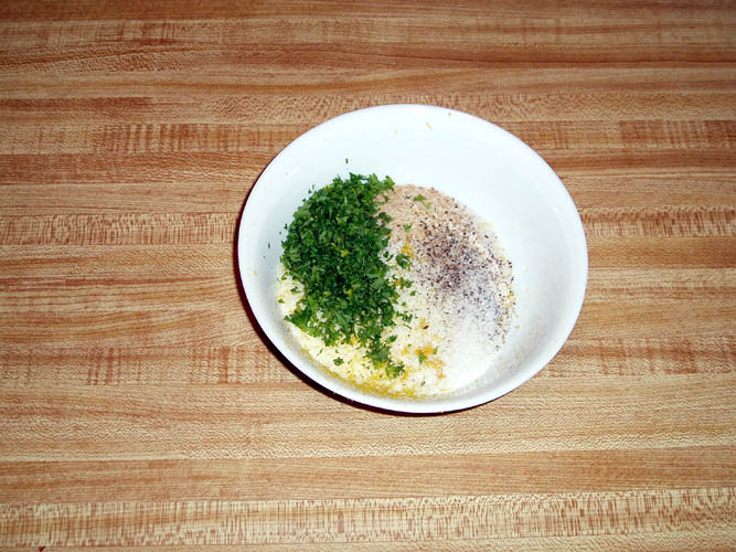 Heat oven to 400 degrees F. In small bowl, mix bread crumbs salt and pepper. Add parsley, lemon peel and cheese; toss well.