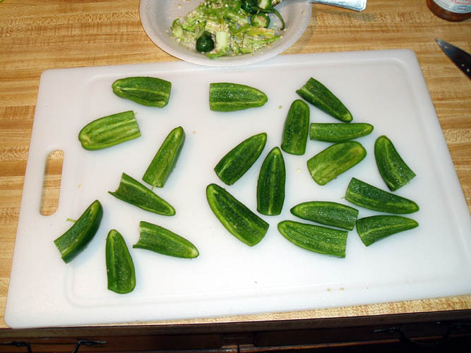 Cut the ends off each jalapeno pepper, split in half length wise and