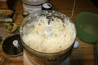 Use a grater or food processor to finely grate the potatoes; you don’t want