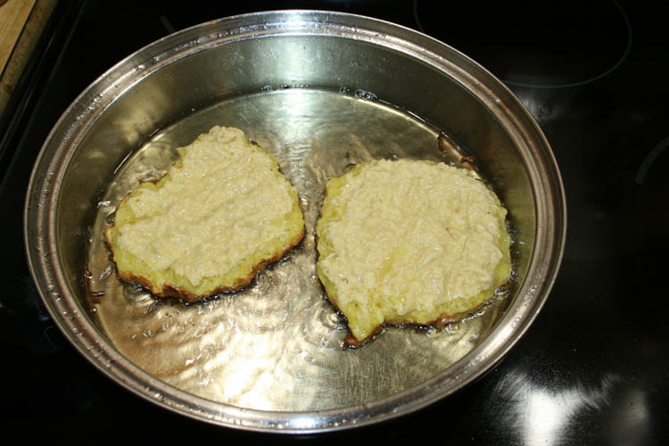 thick strands. Thoroughly wring out the liquid in the grated potatoes