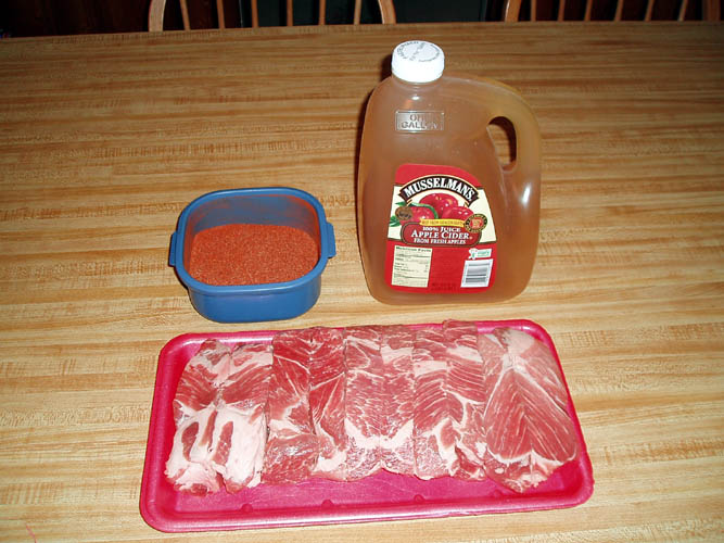 Add 4 cups of apple cider to the bottom of a roasting pan. Coat pork ribs heavily with your favorite meat rub; in my case it is my own Wild Bill's Meat Rub.  Place ribs on top of insert of the broiler pan and wrap in heavy aluminum foil folding foil overhang underneath the roasting pan to create as tight a seal as possible to steam the ribs.  Place in a 350 degree oven for one hour and reduce heat to 250 and leave an additional hour.