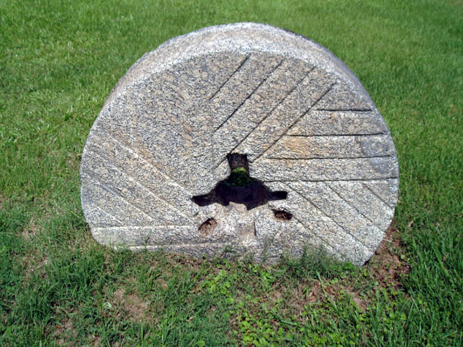 ole moss and plant covered grist mill stones have occupied their silent grave