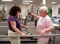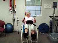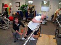 Assisting the Physical Therapist is Wilma Fagio below left in pix who has more energy than
