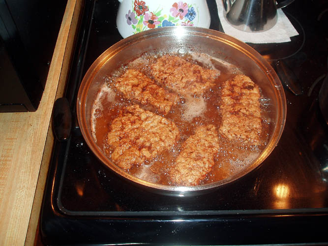 skillet of your choice with 1/4 inch deep peanut oil, Canola oil or oil of