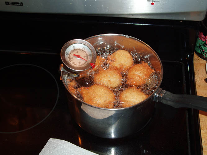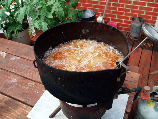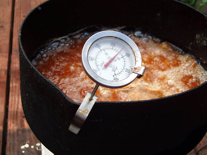 wind is not blowing. Many folks fry their fish at around 375 to 400
