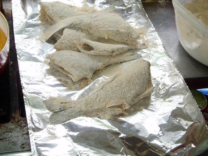 Moss Fish Breader Mix and cornmeal.