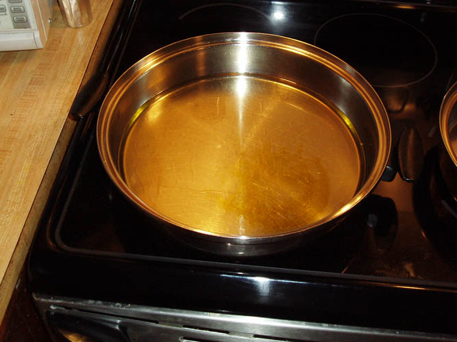 skillet of your choice with 1/4 inch deep peanut oil, Canola oil or oil of