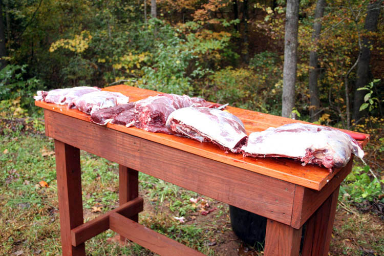 got it back to my hanging tree, skinned and quartered it up. The deer