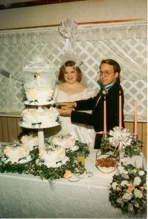 the wedding and my bride baked and decorated the multi-tier wedding cake and