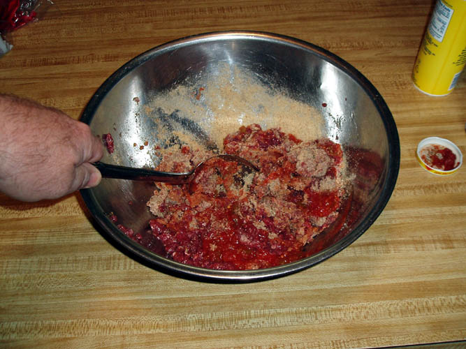 PS   Linda Murray's original recipe called for 1 lb. ground beef, 1 slice of crumbed loaf bread and 1/2 the other ingredients listed but since I package my own ground venison in 2 lb. vacuum sealed bags the recipe was adjusted accordingly.  Pixs below:
