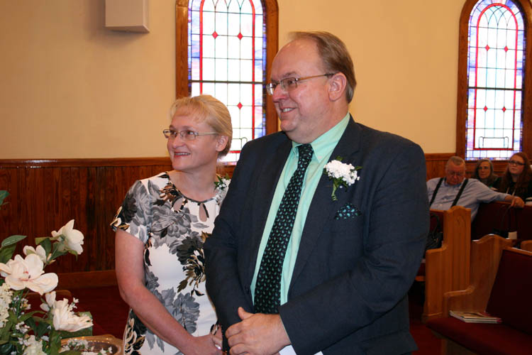 Pastor Sam Abee and Joanne Abee starting the line with guest speaker