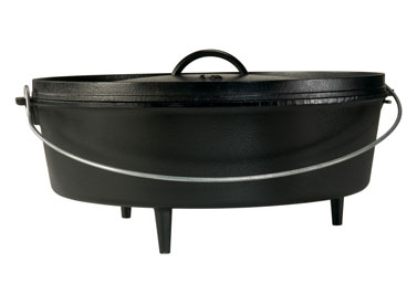 surrounded by a glowing bed of red hot coals with hot coals/embers on top of the lid, one can prepare about
