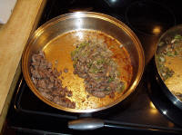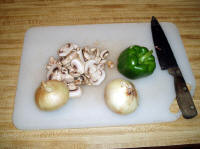 smaller pieces; mix the meat, onions, mushrooms, bell pepper together