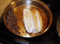 Place a large skillet on medium high heat and add 3 tablespoons of