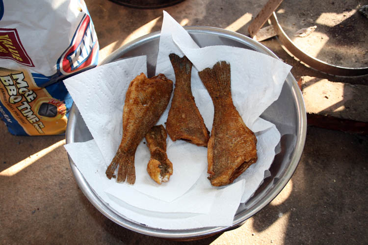 Close up pix of deep fried roe aka Poor Man's Caviar with all the trimmings.