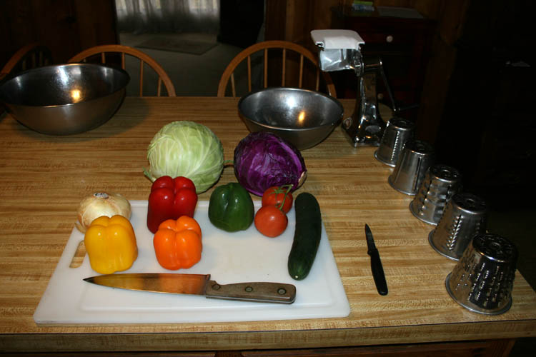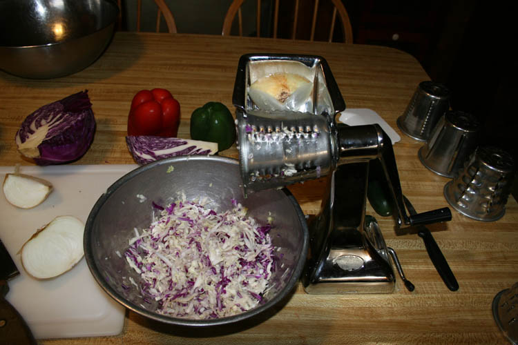 rotary food cutter or manual grader, prepare all veggies. Just before