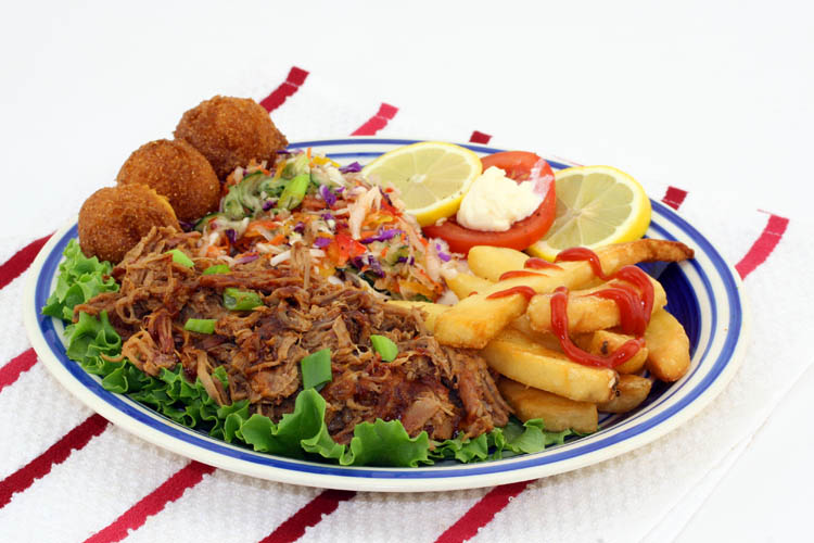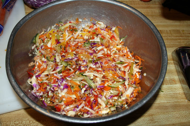 The Rainbow slaw with the sweet salad dressing goes very well with the