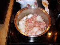 Below pixs of Steve's Beans I did on 03-27-10 served with Connie's Chicken Enchiladas and Fried Mexican Rice and they were "beautimous" tasting for sure.  I substituted thick sliced regular bacon since I could not find the salt pork locally.