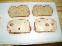 slice of bread. Add 1 and 1/2 slices of Swiss cheese on one piece of