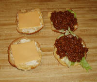 Sloppy Joe mixture on one side of the roll.