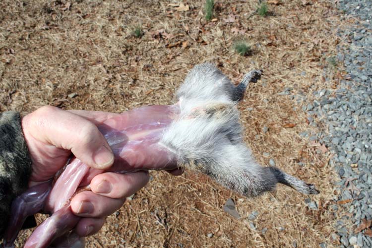 pull the remaining portion of skin (hide) off the belly side of the squirrel