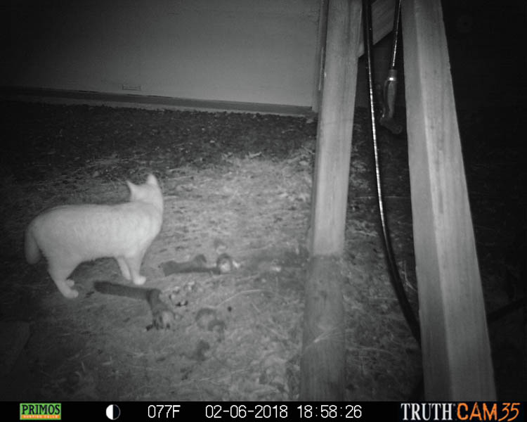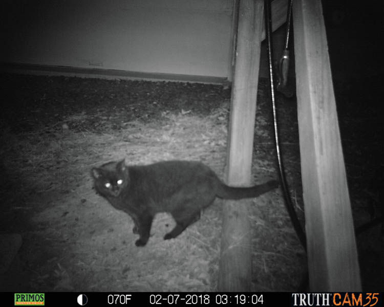 I was thinking maybe a coyote would stop by for a meal, but the cats and