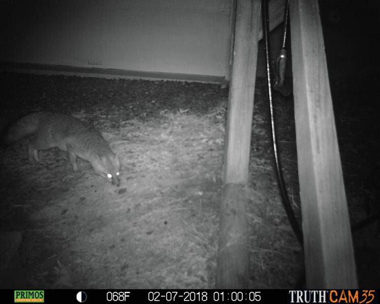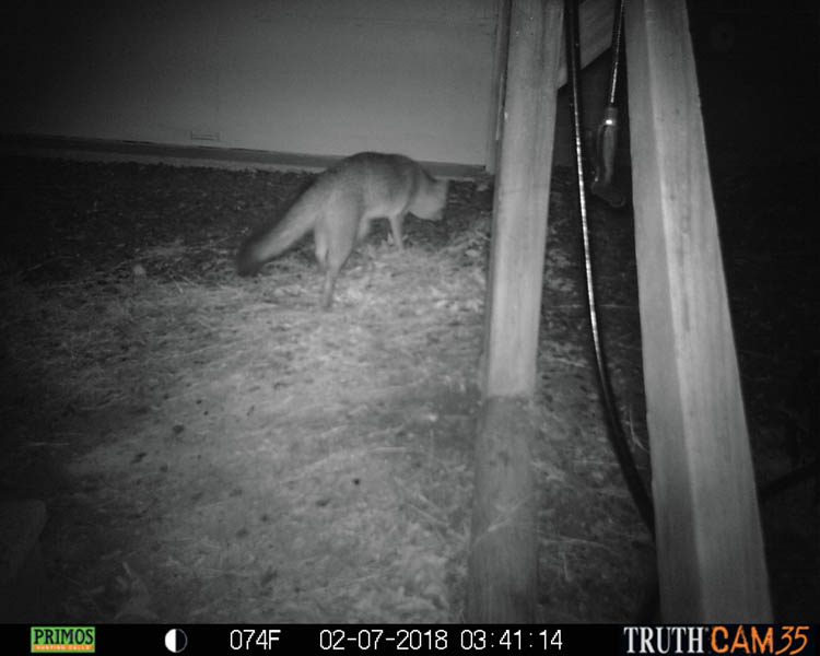 two separate foxes came by starting at 6:58 P.M. and ended at 3:41 A.M.