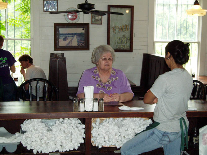 asking if there was a Whistle Stop Cafe and did she have one in mind when