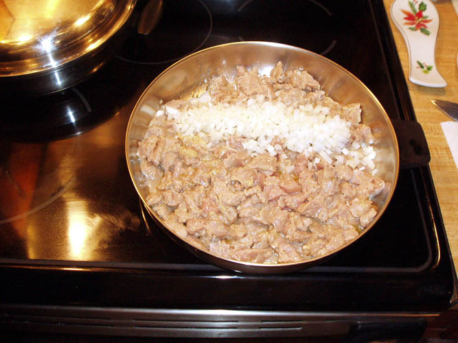 small amount of cubed turkey meat into the center of the tortillas and