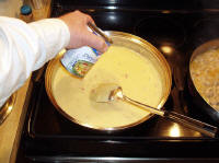 simmer on low once combined. In a small non-stick pan, add oil and