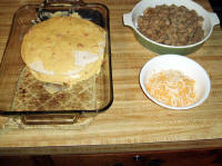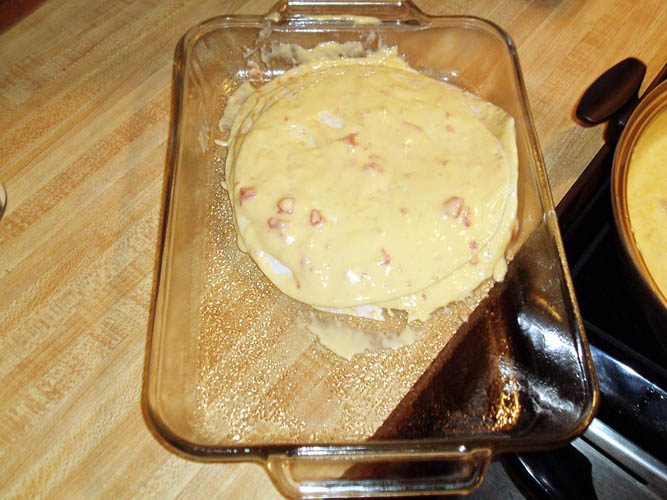placing them side by side in the baking dish. Once all the tortillas