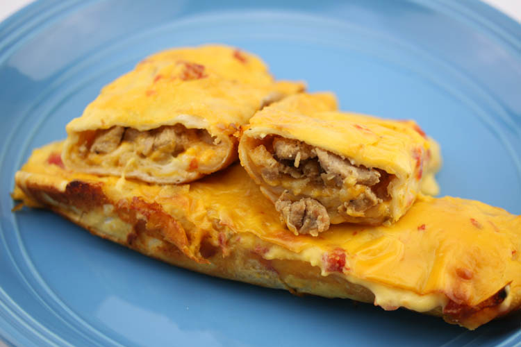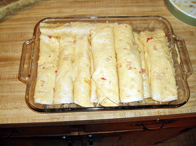sprinkle the Monterey Jack/Colby Jack on top and tightly roll the tortillas
