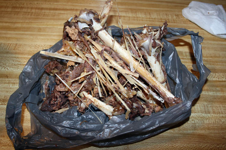 it was set aside. Notice the pile of turkey bones, of which each leg has at
