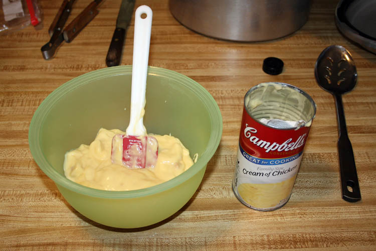 thoroughly heated through. Add cream of chicken soup and once mixed,