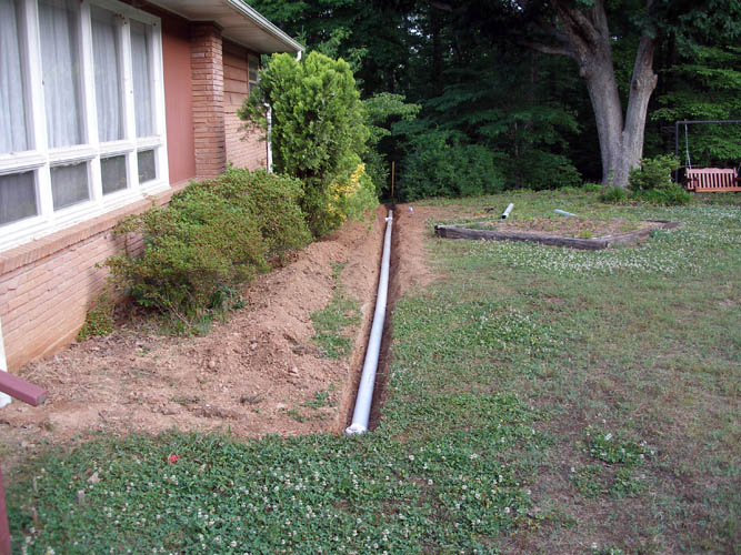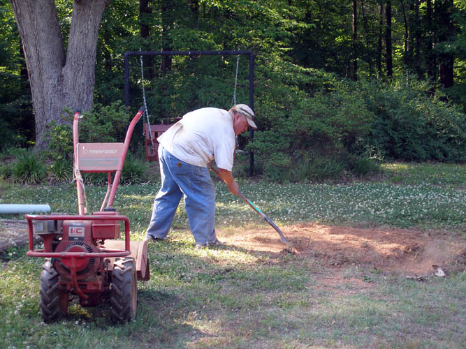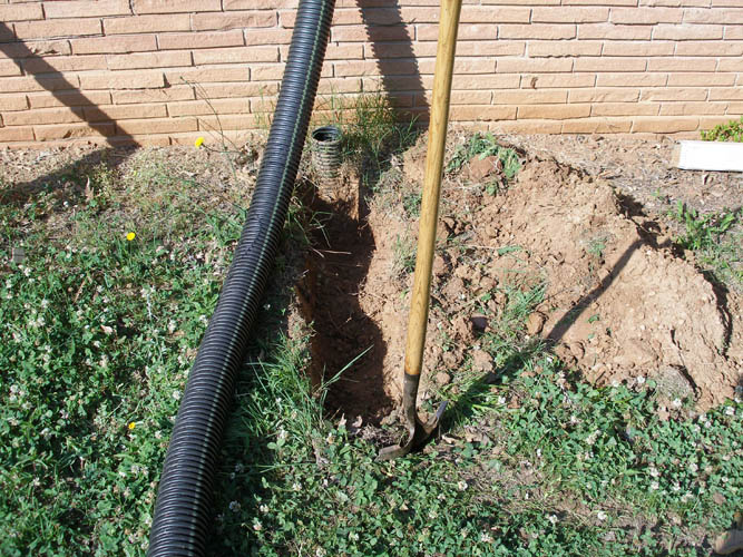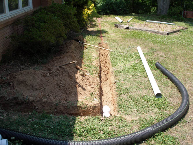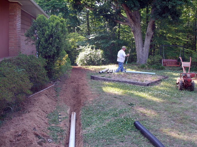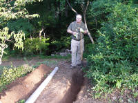 digging a trench for the drain lines which consisted of two lines across the
