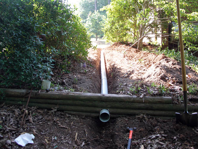 lower end where the proposed new drain line would terminate.