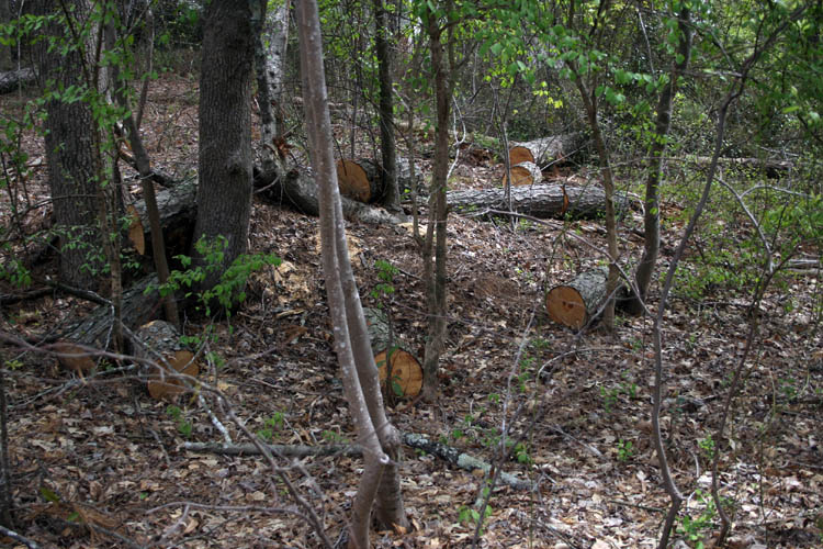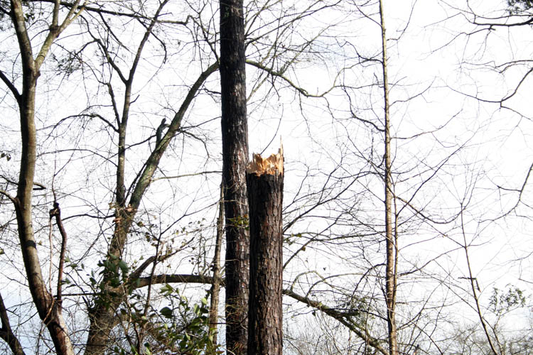 saw out to clean up the mess. The main body of the two fallen pine trees