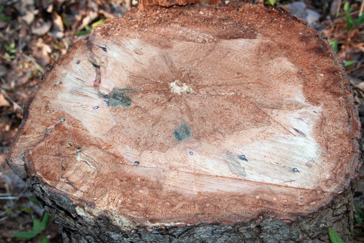 exposed on the back side of the maple tree and started cutting away.